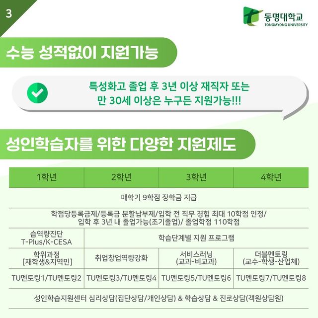 치유학과는 특성화고 졸업 후 3년 이상 재직자 또는 만 30세 이상은 누구든 지원가능이 가능합니다.