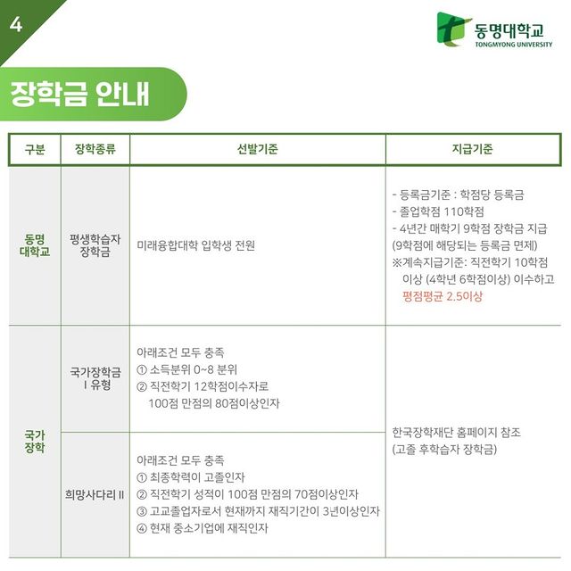 선명상치유학과에서는 조건을 충족시 미래융합대학 입학생 전원에게 평생학습자장학금이 주어집니다.