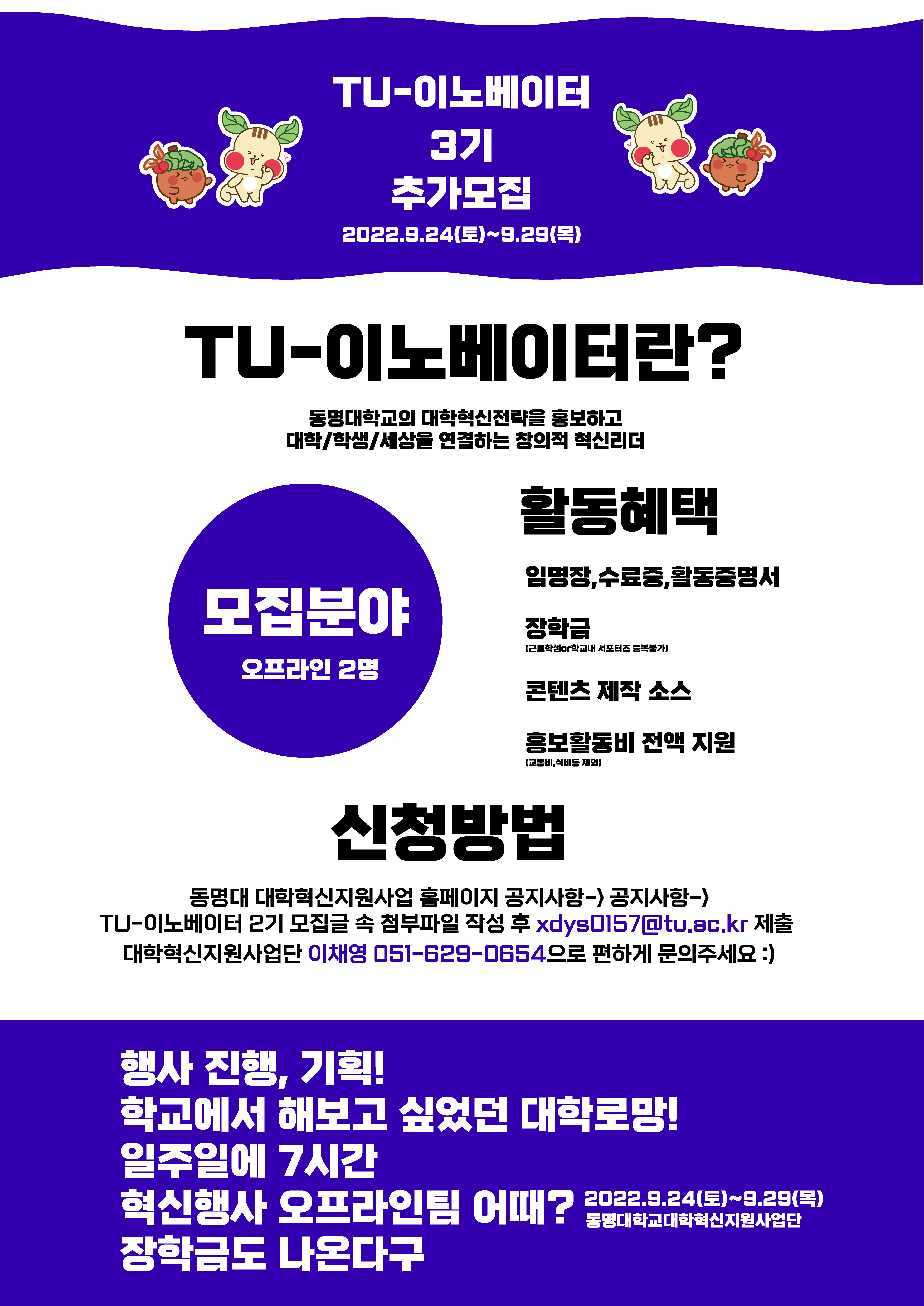 TU-이노베이터 3기 추가모집(오프라인 2명)