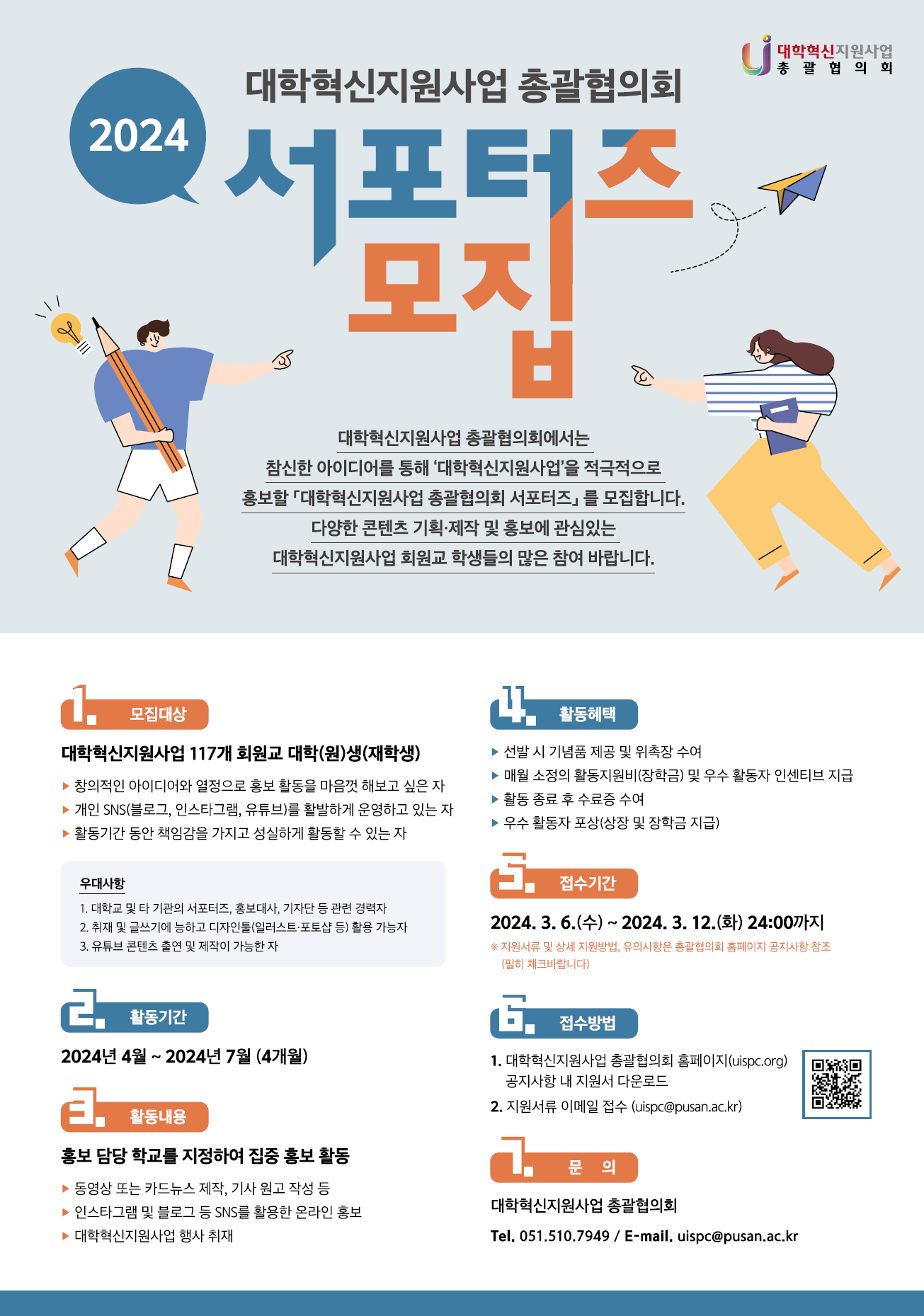1. 공 모 명: 2024 대학혁신지원사업 총괄협의회 서포터즈 모집