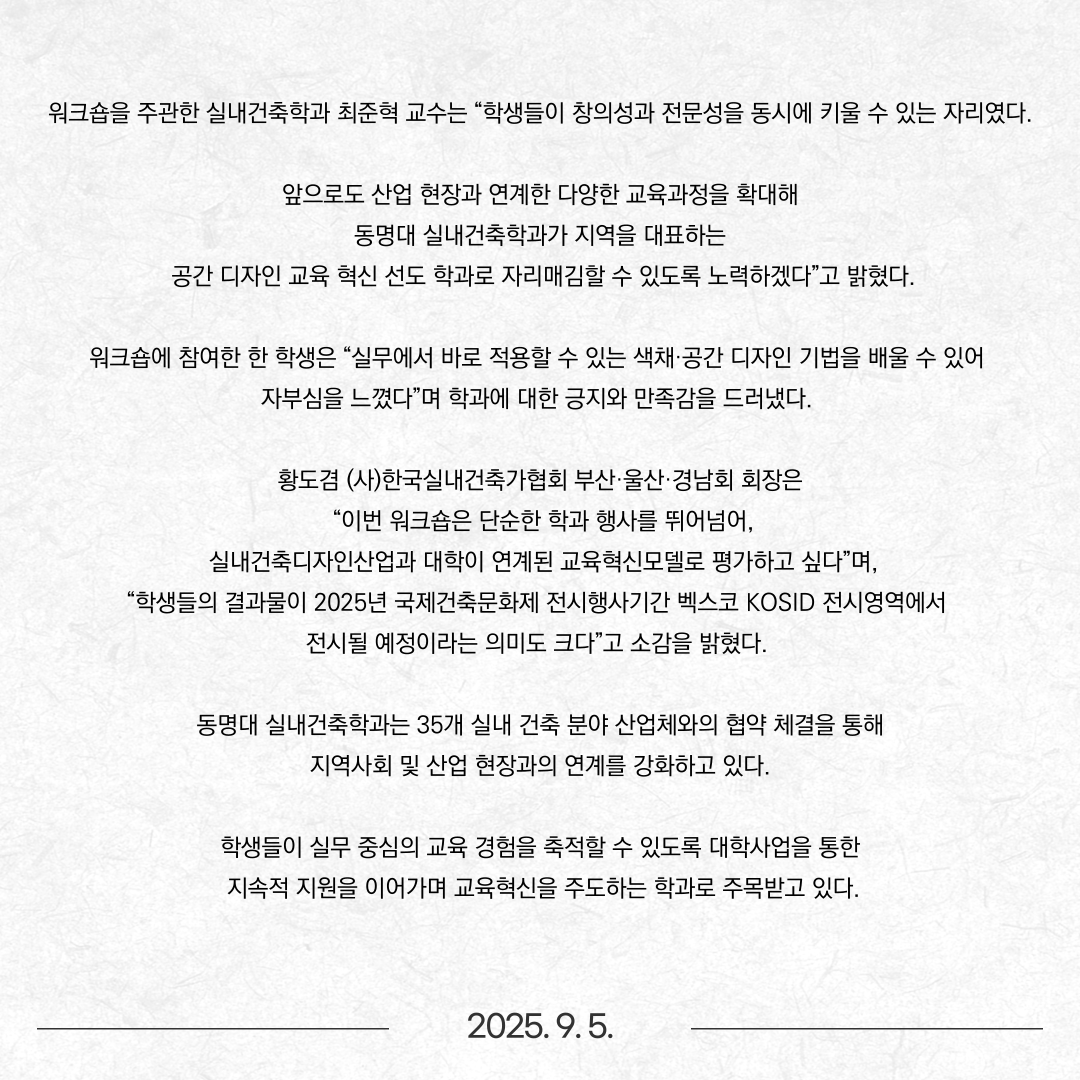 동명대 실내건축학과 산학협력 워크숍