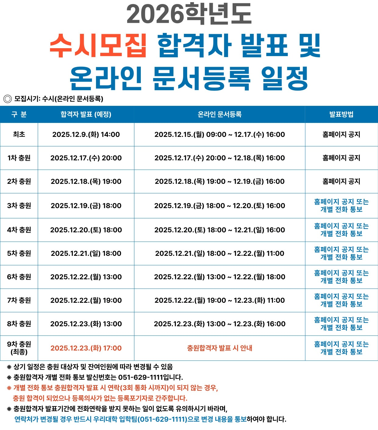 2026학년도 수시모집 충원합격자 발표일정