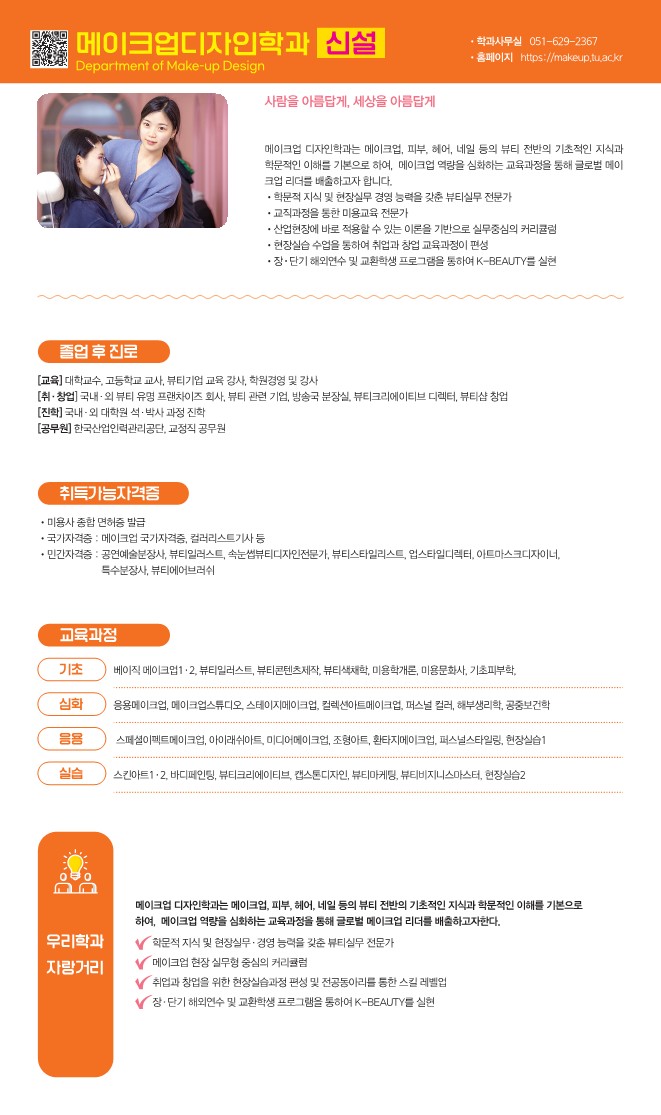 - 학문적 지식 및 현장실무·경영 능력을 갖춘 뷰티실무 전문가