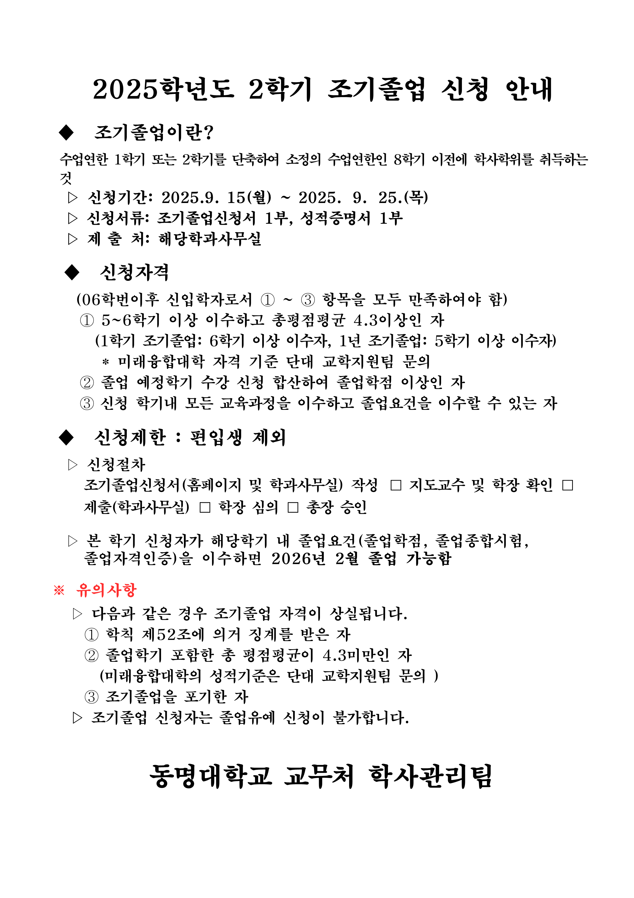 2025학년도 2학기 수강 교과목 철회 신청 안내