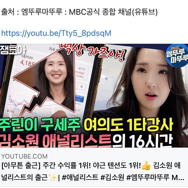 MBC 프로그램 아무튼출근에 애널리스트가 출연하여