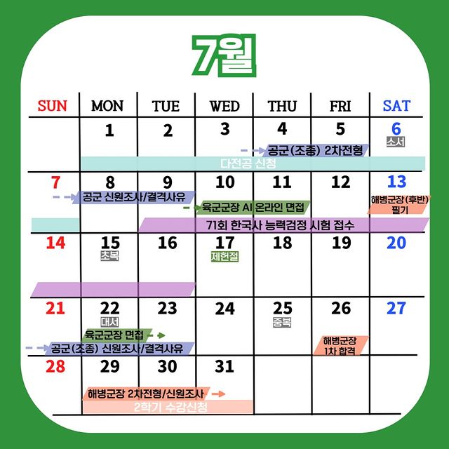 매달 시험 일정과 필요한 학과일정을 정리하여 업로드하겠습니다.