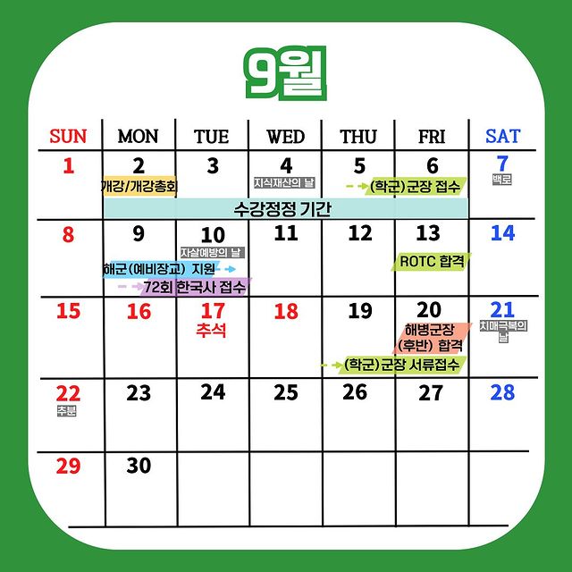 필요한 내용은 캘린더로 확인하시면 됩니다!