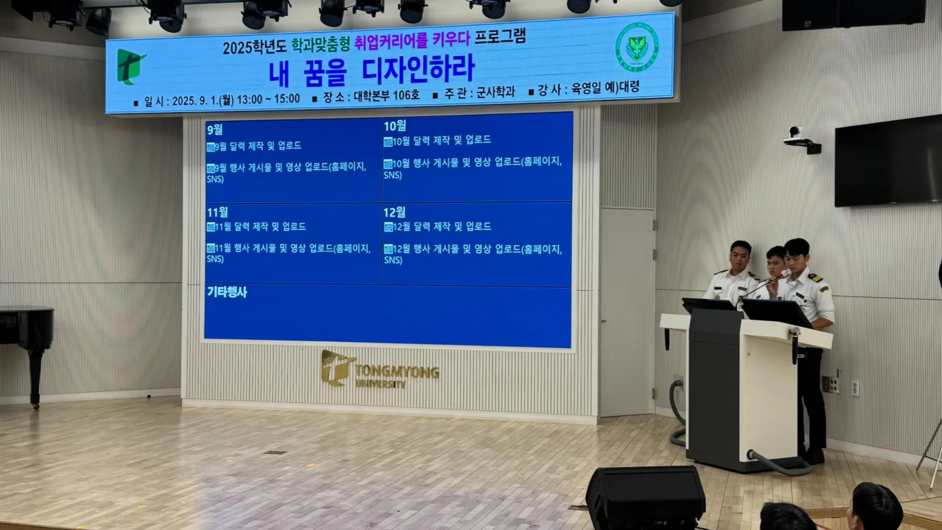 -내용 : 육영일 예)대령 내 꿈을 디자인하라, 국토대장정 소감 발표(11기 이정빈), 해외 답사 소감 발표(12기 김진호)