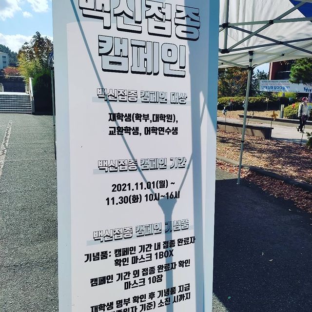 지금 동명대 8번건물앞에서 백신접종완료 재학생에게 마스크를 나누어 주고있어요.