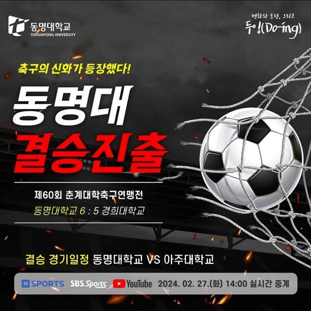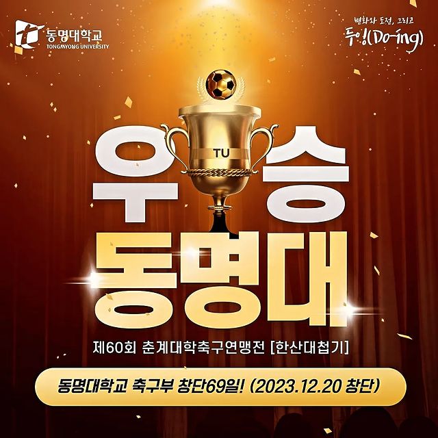 [동명대학교 축구부 제60회 춘계대회 축구연맹전 전국대학 우승 알림]