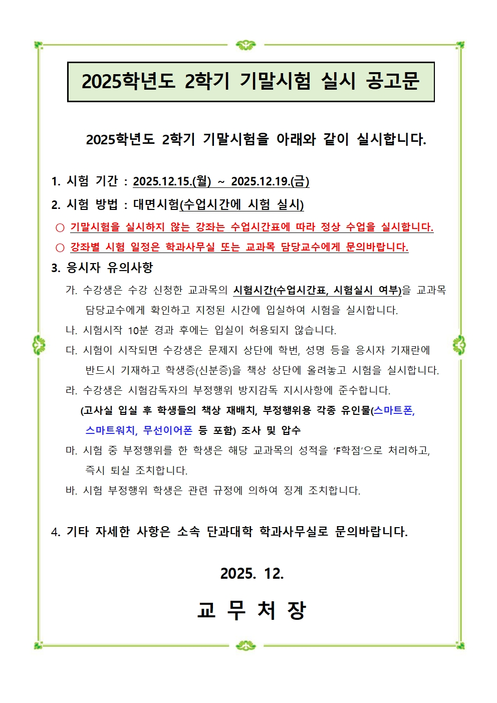 2026학년도 1학기 소속변경(전과) 신청 안내