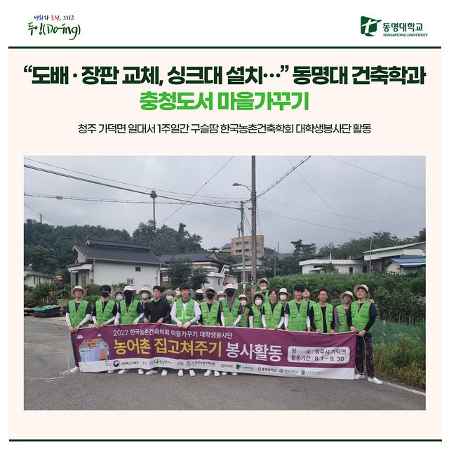 동명대학교(총장 전호환) 건축학과 학생들이 청주시 가덕면 일대 어르신들의 생활편의와 마을 미관조성을 위한 봉사활동을 지난 8월 1일부터 7일간 펼
