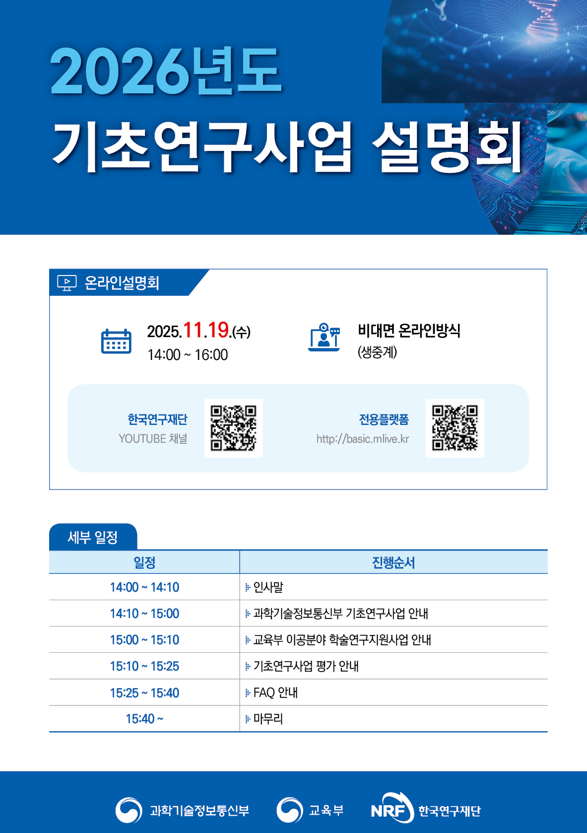 [한국연구재단] 2026년도 기초연구사업 온라인 설명회 개최(2025.11.19. 수)
