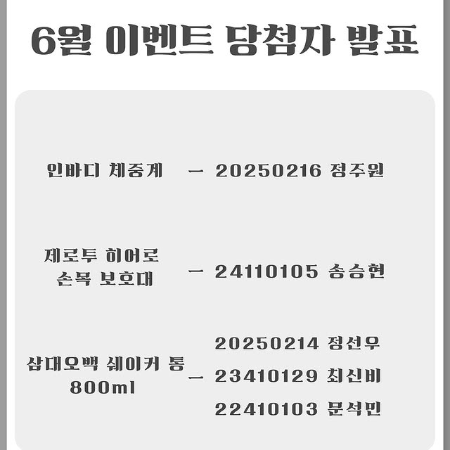 운동 할래?말래?_6월 당첨자를 발표합니다!