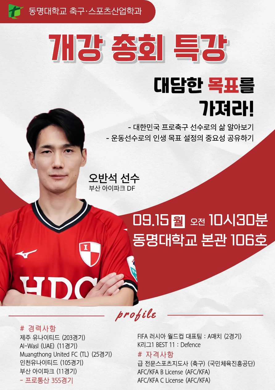 동명대학교 축구·스포츠산업학과 특강 안내