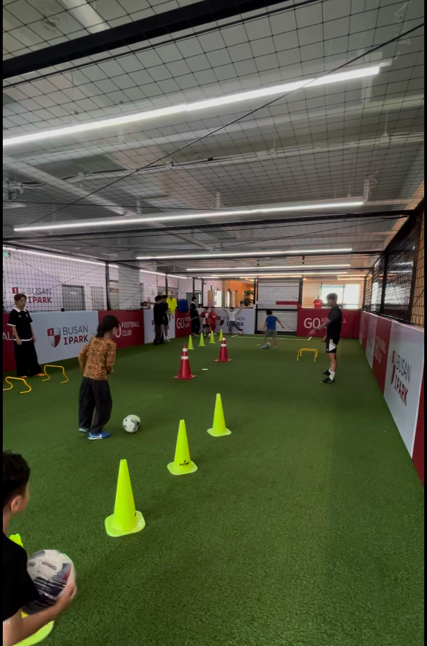 부산 동래구에 위치한 부산 아이파크 지정 협력 기관인 GOFC에 방문하여 학생들이 계획한 수업 지도안을 바탕으로 유소년 축구 꿈나무 대상 '유소년 축구 지도법' 실습 시간을 가졌습니다!