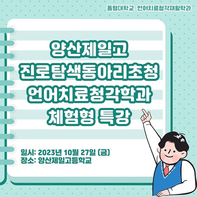🍀양산 제일고 진로 동아리 초청 언어치료청각학과 체험형 특강🍀