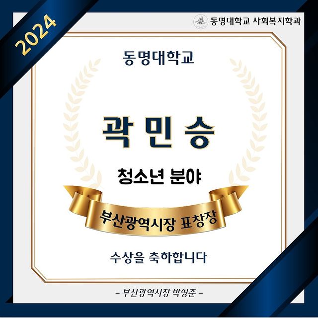 #부산 #동명대학교 #동명대학교사회복지학과 #사회복지학과 #사회복지 #사회복지사 #2024 #청소년 #표창장 #부산광역시장