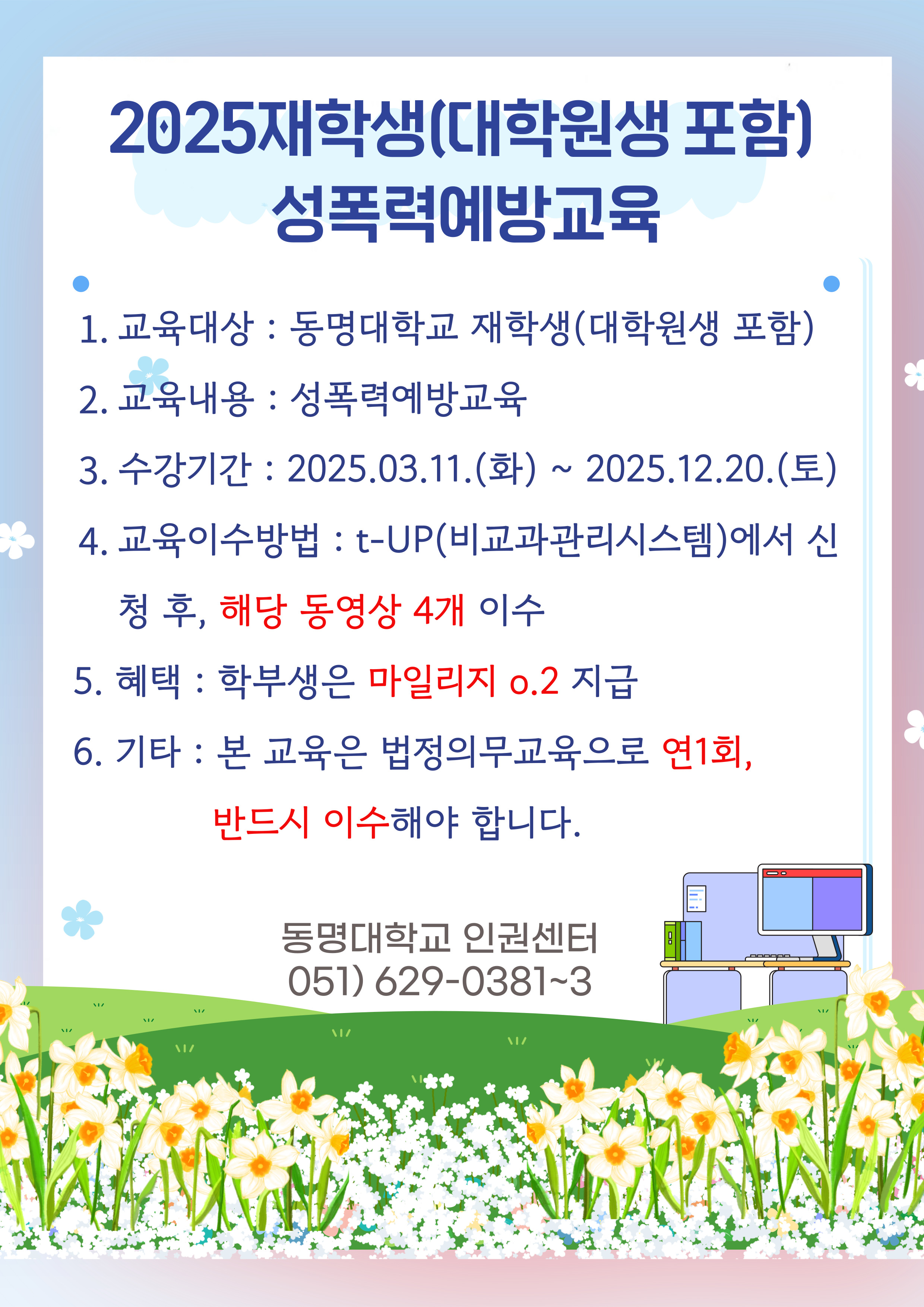 [법정의무]2025년 재학생(대학원생 포함) 폭력예방교육 이수 안내