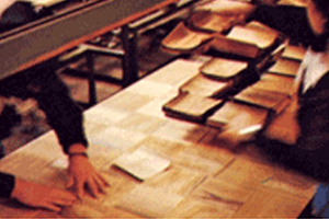 미장합판 공장국내 경쟁 회사가 없었던 것도 아니었다. 그러나 우리 나라 합판업계에서는 동명이 처음으로 수출이란 낯선 영역에 서게 된 것이었다. 그러나 경영진과 기술진은 긴장하지 않을 수 없었다. 비록 수출의 길은 트였으나 주문품이 너무 고급이었기 때문이다. 한번도 생산해 본 적이 없는 문짝에 사용하는 도어 스킨이었고 그것도 옹이가 전혀 없어야 하는 최고급품 DAA였다. 그당시 동명의 시설이나 기술로서는 사실상 생산이 불가능하다 할 정도의 제품이었다. 그러나 동명은 모처럼 찾아든 이 천행을 그냥 놓칠 수는 없었다. 평소 품질 향상을 위해 손수 제품 설계까지 하던 강석진 회장은 이것을 제품의 고급화와 기술 도입을 위한 최대의 호재로 생각했다. 우리보다 앞선 일본의 고급 합판 시방서를 구입하여 연구하기 시작했고 직접 제춤 생산에 참여했다. 수출용 제품의 검사를 위해 검사원을 일본에서 초빙하기까지 했다.