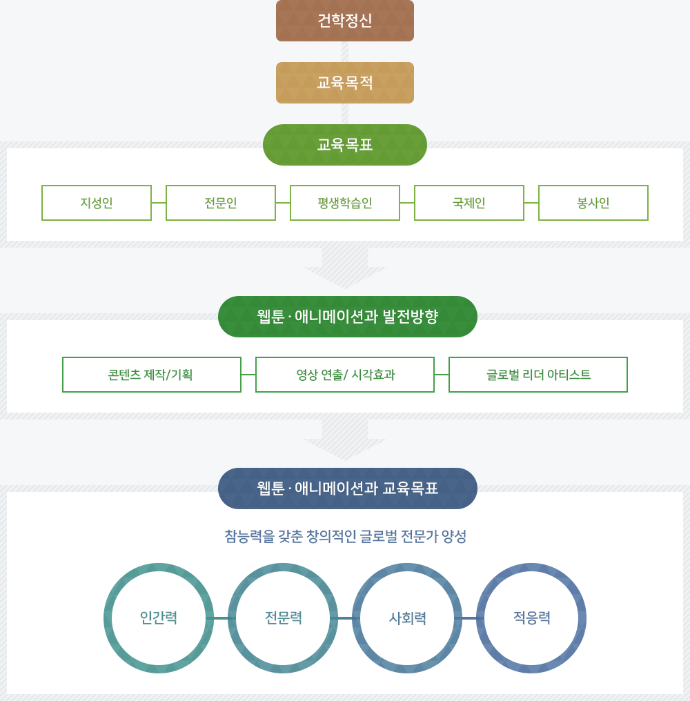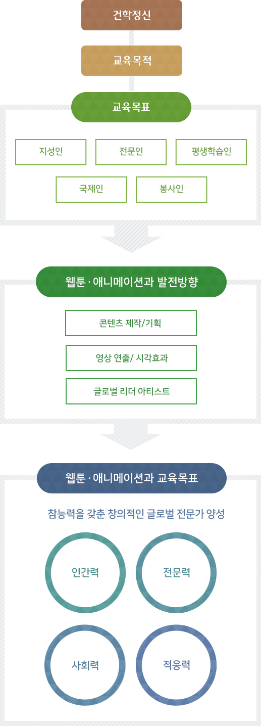 - 지성인, 전문인, 평생학습인, 국제인, 봉사인
