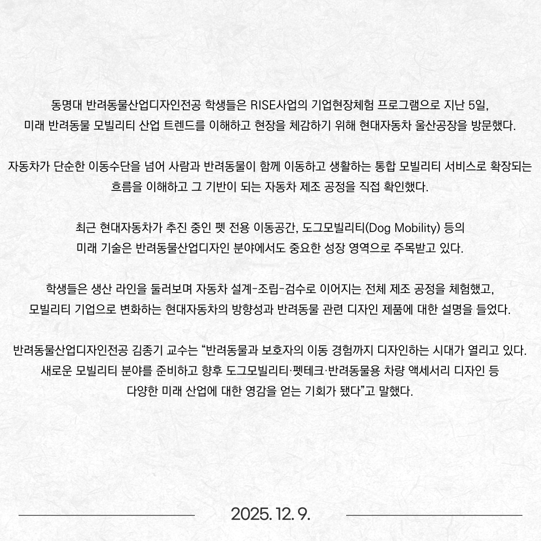 반려동물산업디자인전공, 도그모빌리티산업 현장 현대자동차 공장 견학